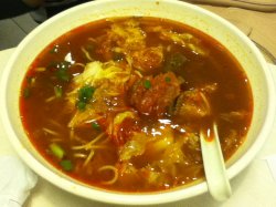 去商城剧院看miss shanghai,附近找了一圈,就这家可以速战速决了。宫保鸡丁套餐,里面有一份宫保鸡丁,量少的可怜啊,狠辣,比我想象的辣至少,半个酱蛋 ,米饭,配了个蔬菜是卷心菜,这些都一般,亮点是配的马蹄冬瓜露很好喝,底下沉着一小粒一小粒的地里,比那些什么珍珠啊蒟蒻什么的好吃多了,又营养,还有配的绿豆汤味道也很不错,在闷热的下雨天吃非常的清爽。尝了下番茄牛肉面,面无功无过,里面牛肉很老,汤头还没有以前统一方便面的番茄牛肉面好。查看更多