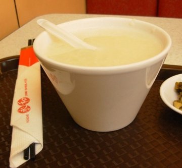 大家都知道啦,说一下里面的豆浆,其实豆浆味道还行,感觉也不是很纯,跟自己家里磨出来的纯还是有区别的。5块钱一杯感觉满贵的。然后以前经常早上会买粥喝,香菇鸡肉粥,味道还不错,但是鸡肉真是少得可怜, 香菇也是那么薄薄的一片,一小片。量感觉有点少,吃不饱。然后一个套餐是鸡肉粥加上一只蛋,或者是油条。 油条味道还是很不错的,尤其是沾油条的那个酱阿,他家的这个酱很多人都应该很喜欢。吃他家的油条我都是冲着那个酱去的。人均20左右。