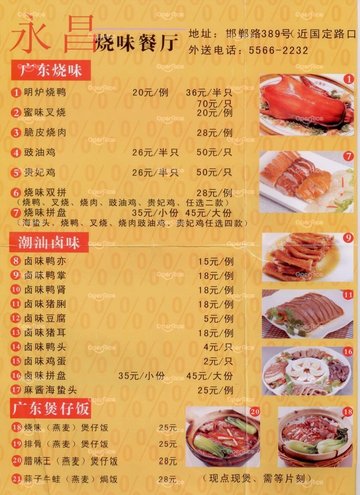 永昌烧味餐厅 (上海) 網址: https://s.openrice.com/KtbS100Lh8100 地址: 上海邯郸路389号(国定路邯郸路) 電話: +86 5566 2232