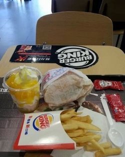 汉堡王,汉堡中的王!地铁1、2号线北大街中转站C出口上一层电梯右边就是。环境还可以。买了一个套餐,加了一个优惠的新品。新品是冰淇淋布朗尼。上面是冰淇淋,下面是热的布朗尼,两个放在一起,冰淇淋很快就化了,布朗尼很快就凉了。很甜。薯条号称薯霸王,一如既往地粗壮。芝士牛油果风味堡里面并没有牛油果。而是牛油果风味的酱,味道还可以。热带果汁味道也还可以。就餐高峰期等的时间较长,还得聚精会神听叫号,但服务员态度都很不错。最后在来一张给凤五様的照片~Read More