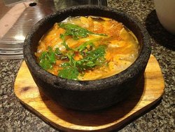 汉拿山烤肉店的生意在湖滨地下街里算还可以的 每天6点基本都是要等位的,烤肉比较的新鲜,五花肉 肉质很好,主食类的 比如石锅拌饭 中规中矩的做的还是挺入味的 主要是酱料的作用才呈现出好吃的拌饭来,韩式煎饺,个头不大 但是一盘有10个,皮子很薄 底上焦香的那层特别好吃 里面有蒜泥和韭菜 很香很好吃,泡菜汤+饭的组合 价格倒是便宜的 米饭烧的比较黏糊了 有点像粥了 不太好,泡菜汤里的五花肉比较的肥,我一直爱吃瘦肉的,所以没怎么碰,松子玉米饼味道淡淡的甜,后味比较的好吃,配的蘸酱有点儿奇怪 甜的饼配咸的调料,还是不用酱好吃,如果吃烤肉的话 自助台调料是5元一位的。店里有无线上网…查看更多