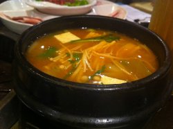 汉拿山已经来吃过机会啦~上次是用了维络城的卡打了个折,这次维络城没有活动啦,用平安银行刷卡,但是好像礼拜一是最优惠的,我们是礼拜五去哒,打了个85折似乎,也是挺划算的~店内的装潢还是独具一格的,很干净,喜欢他们家的壁灯,有点小特别哦~看上去很典雅,很舒适~点了两份石锅拌饭,一份是辣白菜石锅拌饭,上来的时候感觉白塌塌的,好没有食欲哦,但是一拌开来,看上去味道还是不错的,本来还觉得辣白菜少了点,想少拌一点饭,结果味道很足,把饭全拌了咸味正好,吃到最后还有锅巴哦~灰常不错~牛肉石锅拌饭味道还可以,唯一最大的特点是,牛肉好多哦,我们就把牛肉挑走了,哈哈,剩下蛮多饭的,毕竟还点了蛮多烤肉哒~省点肚子~大酱汤的味道满正的,酸酸甜甜的哦,豆腐很嫩,里面料也不算多,关键汤汁感觉味道很鲜美,吃几口烤肉油腻了后,大酱汤绝对是个很好的选择~南瓜粥韩国料理中都是免费的啦~对于汉拿山的南瓜粥来说,我感觉味道一般,不是很纯正,南瓜香味也不是很足,有时候会吃到一块块的,不是特别喜欢~腌制牛舌是我很喜欢的一道菜,但是不知道这次厨师怎么的,最上面的牛舌好大一块哦,不是一小片一小片的,感觉烤都烤不熟~而且很厚实~个人感觉这样上来一盆,很亏哦~哈哈,不过我们吃的很欢啊~五花肉是最后吃的,已经吃的很腻啦,不过五花肉的味道还是很赞的,感觉很撑也还是不停的塞进嘴里啊,味道实在是太鲜美了~~香菜和茶水是免费滴啦~每桌一壶,自己倒了,服务员太忙了,叫了几次都没回应的,最后一个鸡脆骨都迟了好久没上呢,就退了~~饭后还有一小盆水果吃~西瓜很解腻哦~~查看更多