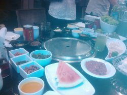 孩子过生日来这吃烤肉,单点了两份肉,一份羊肉,一份牛羊肉双拼,还有我爱吃的拌板筋,肉很嫩,小菜、小料自己取,很是方便,南瓜粥也很好喝,西瓜也很甜,要了牛肉石锅拌饭,这是老公最爱吃的,味道很好,只是他这里的茶总是温的,不热,满一百的送的午餐卷,不能随便用了,要满一百才可以用一张,不实惠了,我们转了大转盘很幸运得到一盘价值188的烤牛小排,下次来吃可以免费得到了,开心!查看更多