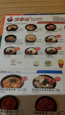 这家汉拿山的地址是东直门外大街48东方银座b1楼,这家店是那种汉拿山的快捷餐厅,没有什么烤肉南瓜粥什么的,只有大酱汤铁板饭还有石锅拌饭,饮料也只有3.4种基本上就是橙汁可乐雪碧什么的,价位不算便宜,一份套餐36.37的还有更贵的,感觉味道是不错的,就是不太划算查看更多