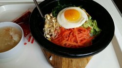 连锁店,在北京开了好几年了。很多店都在商场内,这家在一层,有靠窗户的座位可选。店内环境装修精美。上菜速度时快时慢。以前都是在桌上放散装的拌饭酱,去年年中开始也换成独立包装的酱料了。在某网站上经常出团,团购价大多是15元,含拌饭或大酱汤或冷面,加小菜和汤,茶碗蒸或沙拉。石锅拌饭的味道和其他连锁差不多,就是后厨的卫生意识差,用手抓拌饭菜,不用筷子。查看更多