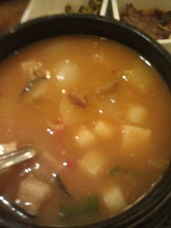 这家店的地址在车公庄大街甲4号官园批发市场1楼西北角,一家汉拿山的快餐店,没有烤肉只有石锅拌饭等一系列的快餐他家的大酱汤做的味道还不错,里面的料很足,蛮喜欢吃里面的土豆的,虽然块有点大,但是口感很不错,很软糯,而且还有酱香味。汤也很好喝,送了一碗米饭,吃着还不错。查看更多