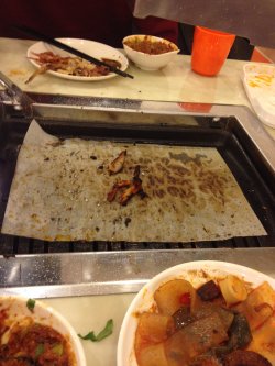 汉斯特烤肉是一家韩式烤肉自助,这家点位于 朝阳区东三环南路农光里117号劲松大厦4楼。午饭的时间去的,靠近取餐台附近的桌子都已经坐满了。他家烤肉是在纸上烤的,可以不换盘子只换纸就可以了。五花肉很多两个大冰柜里面全是,蔬菜和一些鸡肉类的在一个大盘子里可以自取,虾个头比较小而且一上来就被靠近的人取走了。还有小份的糕点和石锅饭。还有甜点等,种类还是比较丰富的。