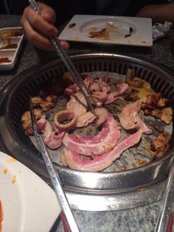 团购去很划算,活动期结束可能不太愿意去了。原价的话,性价比不高。他家酱料就2种,黄酱和辣椒粉黄酱就是咸鲜口味,辣椒粉不错,很香靠蔬菜和土豆片、金针菇的时候,撒一点一起烤很香五花肉,切的偏薄 肉偏肥,烤的油汪汪的然后包生菜吃培根片,很嫩,没有那种烟熏的味道,很容易就烤熟可以吃了石锅拌饭,价格不错,里面酱给的满足的,拌匀的还不错。送的泡菜,味道不错