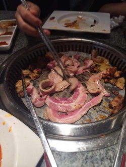 。基本和其他韩国烤肉店一样,基础的那些烤肉。他家自助餐相对便宜,爱吃肉的食客可以团个自助比较划算。酱料有两种,烤肉酱、辣椒粉,酱稍微咸了点;烤盘上垫了吸油纸,须自己掌握烤肉的火候;鱼不是太新鲜,其他的肉还行,五花肉、肥牛、鸡翅、培根、年糕等,种类还比较全。自助的有啤酒供应;南瓜粥比较惊艳,而且是不限量供应