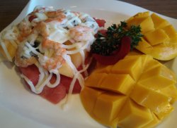 大宁国际商业广场4楼的汉泰东南亚风味餐厅 去吃过几次了,东南亚菜1吃咖喱2吃芒果,哈哈,特点是量都比较大,这个我很喜欢,性价比比较高,46元的香芒大虾沙律量就很大的,又新鲜又大又甜的芒果我最喜欢的,水份还很足,配上了诱惑人的大虾,洒上千岛酱,美味无法阻挡呢。下午茶基本上点一个色拉就够了,吼吼。查看更多
