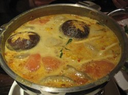 周末在点评论坛里看到有点评卡可以免费吃的88块火锅的活动~~~立即约一蜜蜜下班接头~~~挑了立公司最近的一家分店~~(还是第一次去吃免费的东西)~7点我们赶到我格时~~爬上四楼一看~~门口排队的有五六队~~~拿来了预约号我们就去逛商场了~~附一层里的香味那叫个诱人啊~~~我们没忍住~~~在莉莲里买了两场橙味蛋糕~四个蛋挞~~进联华生活馆买了两瓶甘零~出超市时两块蛋糕已经被我们咪西光光了~~~回去四楼~~天~~~全进去了~~一问两人位已经没了~~乖乖坐着等吧~~~间隙两个分别又吃了个蛋挞~~嘿嘿~~~五分钟后终于有位~~两个屁颠被领进去~~~去吃免费总有点不好意思~~~又点了一份波萝饼~~一份粗粮饭~~共计21米~~~再加上那个免费的咖喱火锅~~~锅等了有十分钟上来了~~~不大的锅头哦~~~~只比豆捞里的每个人面前的那个小锅大一点~~~咖喱锅底的味道很足(有点小咸)~里面已经有了一些蘑菇跟西经柿~~~蜜蜜说有点吃不惯这个味~~我小声提醒说~~免费滴不要挑~~~嘿嘿~~~锅料还是很丰富滴~~丸子~五花肉~里脊肉~土豆~~香菇~(好像缺了点蔬菜)~~波萝饼味道不错~但是不是吃这个咖喱锅的好搭配~葱油饼应该会好吃很~~一分粗粮饭是我一个人吃的~~糙米滴~那蜜不要吃~~~看到他们菜单上还有一个大份的芒果沙拉~~~48块一份~~~忍住了没点~~今天的目的是要吃免费滴~人均标准10块不能超~~~(虽然结帐时是21块~~~)~应该说这个锅锅还是不错的~~~但是吃不惯咖喱的亲们就点其他菜吃吧~不过他们家菜价不便宜哦~~~(上点图)…Read More