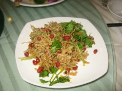 十二人聚餐,团购了江南村的十人套餐,再加了些点心饮料,大家都吃得挺满意的。 冷菜 糖醋海蜇头,海蜇头弄得很干净,没有沙,脆嘣嘣的,糖醋的拌法,很爽口哦! 菠萝鸭脯,量满足的,鸭胸肉切片,旁边放了菠萝块装饰,鸭肉的味道不错,不过并不是我想象的用菠萝和鸭肉同煮,让鸭肉带菠萝的香甜。 自制咸香鸡,咸咸鲜鲜的,好吃的,鸡肉也嫩的。 墨鱼大烤,墨鱼个头挺大的,处理得很不错,咬得动,而且蛮入味的。 小鱼花生,银鱼干弄熟了和花生一拌,下酒菜哦,银鱼干挺鲜的,花生香脆哦。 肉汁小香菇,香菇真的很小诶,这样大概方便入味哦。 美极酱萝卜,脆脆的,嘎嘣嘎嘣咬起来很爽。 水果色拉,味道还行,选料比较普通。 热菜 上汤伊面焗龙虾,龙虾的个头不小哦,六百九十九的团购能吃到龙虾么,也不能多高要求,应该是冰冻的吧,不过肉质吃起来还不错,蛮弹的。 XO酱爆响螺,很喜欢XO酱哦,觉得好鲜美的说,螺片也蛮嫩的,配了西芹,XO酱的味道渗入其中,很美味哦。 广式蒸多宝鱼,鱼蒸得不错,火候正好,鱼肉很鲜嫩。 蒜茸粉丝扇贝王,扇贝挺大的,东西新鲜,这样蒸制出来总归好吃的。 鲍汁扒海参,这年头海参贵啊,摆盘上周围铺了一圈西兰花,海参和菌菇烩在一起,QQ滑滑的,好吃。 白灼基围虾,原汁原味的做法,最能尝出新鲜度了,虾很挺括,虾肉Q弹,灵的。 樟茶鸭,这个量也挺足的,咸鲜入味,鸭皮也不会很肥,不错哦。 美味蹄髈,这个也是个管饱的大菜,不吃皮,挑了点瘦肉吃,蹄髈肉靠骨头的最好吃莱。 金牌香芋,香芋切块,炸了,在浇上酱,老糯的,很受欢迎的说。 四季时蔬,上的是杭白菜,这个没多少讲究啦,菜还挺嫩的。 一品海鲜煲,就是些蛤蜊啊、虾蟹烧得汤,鲜是鲜的,不过略带点腥。 点心 绿茶饼,套餐里是十个,我们多了两个人,特地再加了两个,热腾腾出炉时最好吃了,馅儿很细滑,也不会太甜,灵的。 豆沙麻心小汤圆,喜欢有芝麻馅儿的小汤圆,这东西吃了也很饱。 龙虾泡饭,龙虾须烧的,这个肯定很鲜啦。 时令水果盘,就是一盘西瓜啦,随便吃吃。 我们另外点了壶茶和一点酒水,价钱也不贵。团购的性价比很高啦,菜色的味道大家也都挺满意的。服务么,他们有些忙不过来,不过我们如果招呼他们来,态度倒也还不错。…查看更多