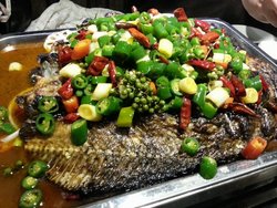 江边城外巫山烤全鱼,很喜欢的一家烤鱼店。过年来的,人不多。环境很好,灯光打的很漂亮。喜欢吃他家的豆豉烤鱼,烤鱼很入味,刺也不多。鱼肉很嫩,特别的入味。主食喜欢凉拌面,面条是方便面那种,但是调味不错。查看更多