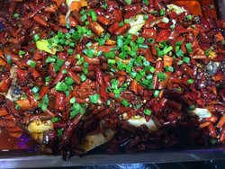 江边城外巫山烤全鱼是吃过的烤鱼里最好吃的一家,价格人均要80左右,餐厅的环境很好,服务也很热情,就是鱼烤的有点慢。双椒味的烤鱼不是特别辣,青红辣椒超多,喜欢吃辣的人用这个拌饭吃非常香。鱼鱼肉很厚,下面垫的配菜,挺入味的,鲜美香辣,越吃越香,很爽口。查看更多