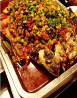 这家店就在东方医院的正对面,环境很好,虽然人多,但是布置的挺精致的。凉菜点了萝卜皮跟油麦菜,萝卜皮很好吃,特别脆,酸甜辣口味的,一点萝卜的辛辣味都没有。麻酱油麦也挺爽口的。烤鱼选的鱼香口味的,闺女也能吃,推荐清江鱼,口感细滑,也没什么小刺。我们3口消费200元不到。查看更多
