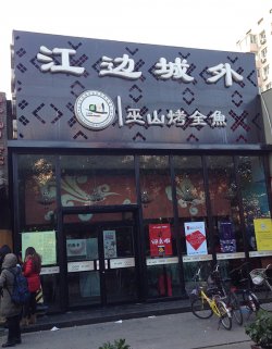 江边城外巫山烤全鱼 在丰台区芳古路芳群园二区12-1号(东方医院西门对面)。江边城外巫山烤全鱼 算是很有名的烤 鱼店了,他家 的烤 鱼是最早做的,很早的一拨,也有好几家分店,鱼的份量给的特别 足,不到3斤的鱼,很大的一条,吃着也很香,如果觉得不入味,可以用鱼内蘸着里面的酱汁吃,鱼肉很鲜很嫩,总体人均不太贵,性价比比较高。他家的酱油炒饭,也很好吃,米饭一粒粒的,亮亮的,炒的非常均匀,口感很不错。查看更多