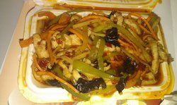 江边小镇巫山烤全鱼的烤鱼是很好吃的,最爱吃的是麻辣清江鱼,这次要的是外卖,叫的小炒,鱼香肉丝是我的最爱,肉丝很细,配菜很全,很喜欢吃奥,米饭不错,一粒一粒的,很香奥。