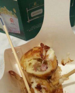池田家太火了,我晚上去看电影时寿司已经卖光了,所以只加餐了章鱼丸子。小伙弄的还挺快,大概5分钟出锅,晚上人不多,等待时间也不长,每个丸子都有1到2块大章鱼,味道也不错,看到好多人要的都是芥末的,没敢尝试,先来一个原味的吧,下次尝尝芥末的。面糊的味道也很赞,再加上章鱼,很过瘾。不像有的别家的,基本看不到章鱼。这里可是实实在在地哦。查看更多