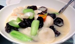 胜瓜竹笙浸蟹粉球挺好吃的,里面的胜瓜有些脆的感觉,比较新鲜,蟹粉球 香香的,挺不错,特别好吃,汤也特别入味,好喝。烧味拼盘,鸡肉特别好吃,挺入味的,有点甜甜的口感。他家的环境 挺不错的,挺大的,装修不错。查看更多