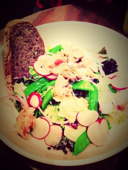 一直爱吃意面,他家的菜色都主打健康的,老外很多来光顾,这家店外卖的多,堂吃的人很少,大爱阿,每次去都有沙发位子坐滴,喜欢金枪鱼意大利面,里面有车达芝士,香草酱,松子,回味无穷哦!色拉里的三文鱼味道很不错,旁边放了一片粗粮的核桃燕麦面包很香,我一般喝树莓香蕉果昔,这次还尝试了新品草莓梨汁很清新哦,还有甜品里的胡萝卜蛋糕也是王牌呢!现在有团购,价格好给力!