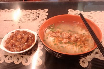 辣肉面是12元,加辣酱就是18元,辣酱里面有土豆,豆干,笋。我每次都是要加的,辣肉是很十足的,肉质很好的,有嚼劲。很入味。面很Q,但是分量吃饱的话,感觉女的2两够,男士起码3两。环境一般性,空间很低,两层。