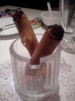 一直看到这个店,却始终么去过,,嘻嘻,原谅偶的OUT吧。终于某日决定去拉,大家都强烈推荐的雪茄虾,真心大爱!!!杜夫雪茄虾 6元一根,这个真心好吃,造型也很可爱,做成了雪茄的样子,里面的虾肉弄的狠紧凑,有点点虾的味道的说,很爱啊。。椒盐口口脆 12元 这个一般般,最近不太爱这种东西的说香烤鲜虾吐司 22元 怕胖,,吃了一个~汗。。提拉米苏 22元 话说这个提拉米苏做的还满精致的,首先上来,已经看上去很有食欲啦提拉米苏么我一向爱的,不过这个要赶紧吃哦,吃的慢,味道就不赞了杏汁西米露 16元 &酒酿小圆子 16元 甜品一般般饮料选了冰拿铁~天热喝喝还满舒服滴。。慢大杯,喝喝正好~服务还是很不错的说~~环境嘛也可以滴~嘻嘻,有WIFI的说,不过信号里面的位置不太好。。推荐菜: 雪茄虾查看更多