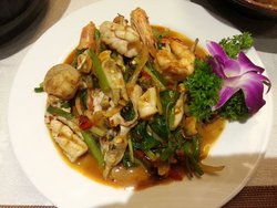 一直很喜欢泰餐,咖喱,海鲜做的都非常好。餐厅看着不大,环境挺好的,比较清静,服务也周到。炒海鲜吃着鲜美可口,而且微辣,吃着很开胃。里面的鱿鱼吃着很Q弹,虾新鲜味美,花蛤和蛏子都处理的很干净,入口滑腻,配着店里的香米饭是极好的。查看更多