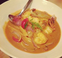 泰客是泰餐,店里的环境看着还可以,人也挺多的,桌子不是很大。咖喱一直都很喜欢,尤其是咖喱皇炒大虾,虾新鲜又大,咖喱浓稠,颜色很诱人,还有浓浓的奶香味,直接吃也不是很咸,大虾很好剥皮,肉很弹,吃着很爽口。查看更多