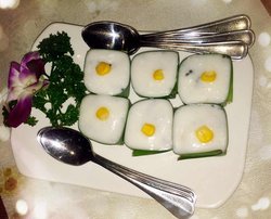 上个月去吃的这家店的四人餐团购,我们仨去的。这家店坐车109、110、75、650到朝阳门外从丰联广场穿过去再往南一点点就是悠唐广场,在5层。装修的很有特色,很幽静的感觉,蜡烛、荷花都很清新的情调,虽然稍微暗些,但是特别惬意。服务员态度也非常好,很和蔼。出示了团购券,饮料选了奶茶,就等着了,上菜速度还蛮快的。奶茶,不会很甜,反倒很浓郁、浓香的茶味,应该是自制的,挺清香的味道。虾片,一小筐里面20几片,虾片很大,特别酥脆美味,太好吃了。青木瓜沙拉,有酸辣和甜味,很开胃,青木瓜脆脆的口感。冬阴功汤,很浓郁的味道,但是喝起来不会腻,里面虾挺多的,也很新鲜、很软嫩。黄咖喱牛肉,特别下饭,虽然量不算多,但是牛肉很嫩,咖喱味道也很浓郁。炒海鲜什锦,里面有虾、海蛎子、扇贝和鱿鱼,有点微辣的口味,味道很浓郁,这些海鲜都很新鲜、鲜嫩,配着米饭也特别好吃。虾酱空心菜,放了一点虾酱提味不错,空心菜挺嫩的,吃起来不会塞牙,很清爽。青柠蒸鲈鱼,从中间劈开两半儿,鱼挺大的,鱼肉特别鲜美,鱼很新鲜,鲈鱼没什么小刺,吃起来还挺方便的,蒸的时候放了青柠汁细细能尝出青柠的味道。椰奶西米布丁,椰奶味特别浓郁,甜甜的,个头不大,可以一口都放到嘴里,西米糯糯的口感。查看更多