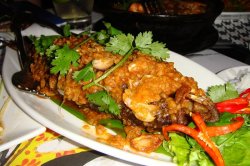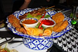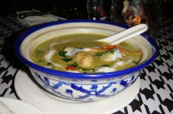 比较正宗的泰国菜说实话有些吃不惯还是更喜欢广州蕉叶环境蛮温馨的榻榻米做起来很舒服服务员态度不太好很嫌弃我们ORZ反而经理态度很好可惜语言有障碍冰柠苏打水,现在出去吃饭一般都点这个,夏天喝很清爽,就是量有点少栗子酸奶,不是我的菜,里面的栗子也很难吃椰皇,也不太好喝,淡而无味青木瓜色拉,不好吃,不够入味猪颈肉,绝对推荐,肥而不腻,入口即化,蘸酱也超级好吃拼盘,虾饼最好吃,货真价实,虾肉很弹牙,牛肉饼也不错,牛肉串有点干绿咖喱鸡,非常好吃,咖喱奶香味十足,甜甜的,拌饭一级棒,个人觉得这里的绿咖喱做的比黄咖喱好吃炸鲈鱼,很好吃,炸得非常透,上面的酱汁都渗进去了,非常入味虾酱空心菜,味道也不错,至少不咸烤鸡,非常嫩,很入味,皮比较好吃大虾粉丝煲,不太好吃,粉丝没有味道的,大虾也不入味,orz咖喱炒蟹,有点失望,蟹的个头有点小,黄咖喱勾芡得太厚了,味道也so so炒蘑菇,不是偶的菜,一般般炒牛肉,蛮好吃的,牛肉很入味,而且很嫩炒河粉,刚开始觉得不太好吃,但是吃到后面越吃越好吃,河粉湿湿的,很入味,一点也不油腻,和蛋皮、肉松拌在一起吃,吃了停不了冬阴功汤,是我吃过好喝的冬阴功汤,香茅味很重,酸酸的,很开胃香草冰激凌&比利时巧克力冰激凌,吐血推荐,2种味道都很好吃,比利时巧克力里面还有巧克力酱,一份绝对不够啊芒果布丁,不是偶的菜,无爱椰汁黑糯米,这个很嗲的,比满记的还要好吃可能第一次吃正宗的泰国菜,有点吃不惯,他家菜看着不贵,其实量都很小,人多的话肯定吃不饱…查看更多