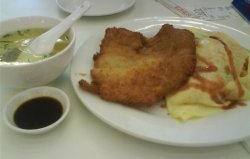 泰煌鸡是这家的招牌,味道还蛮好的,有点像上海的小绍兴的白斩鸡,鸡皮很滑,鸡肉很嫩,蛮喜欢的说~炸猪排推荐的,这家的猪排外皮很脆的,面粉很少,肉蛮多的~炒饭什么的也都蛮不错吃的~培根虾仁炒饭、牛肉蔬菜炒饭都蛮不错的,炒饭的量很大,适合两人分享的说~查看更多