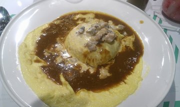 想吃咖喱饭,就去他家了,开在闹市区,毕竟对我来说很是方便,最爱他家的起司鸡丁咖喱蛋包饭,分量还算可以,我这样的完全能吃饱,咖喱的味道还是有的,就是比较的淡,我最喜欢,用勺子把里面的饭料全部的搅拌的均匀均匀的,一勺子下去,有饭蛋皮蘑菇鸡肉咖喱和芝士的香味,这么多食物一下子全部进入到嘴巴里面然后充分的融合,不要提有多少的和谐了,咖喱蛋包饭真心是神奇的东西,我这种不喜欢吃饭的,也能让我把一盘子全部吃光