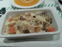 洋葱咖喱的店面环境很小资,店面不大,服务还挺好的。焗咖喱牛肉饭38元一份,分量很足,饭上面铺着牛肉块,土豆块,满满的芝士酱浇在上面,吃起来香嫩多汁,肉质的口感细嫩。查看更多