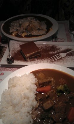 既然店名叫“洋葱咖喱” 那么一定是以咖喱做为主打。也是一定要试试的 GG要的咖喱炸牛排饭 炸的酥脆的外皮。 很嫩的牛肉。 满满的咖喱。。。。各种欣喜~~~我要的咖喱蘑菇鸡块 鸡块很贴心的去了皮~省了我的事了~吼吼~~ 鸡肉也是很鲜嫩。是在鸡腿的那一块~ 咖喱偏淡,服务员反复强调说咖喱是带微辣的 还是没吃出辣的感觉来~~ 但料还是很丰富的 就着吃完整盘饭木有问题~ 口重的人可以跟服务员要求再辣一点的~查看更多