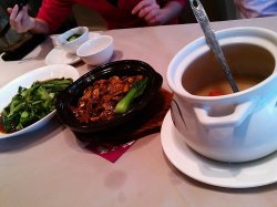在巴黎春天的4F,都是卖衣服的,找了半天才找到,弯来弯去的,有点郁闷。中午竟然还要等位,领位的女人发号码也有点乱来的,后来出来一个男人在那里用上海话叫,3,4分钟就好,等一些等一些。后来知道原来因为有团购的关系,又碰上了。门口的环境真的很差啊,里面还算光亮。招牌菜BB鸭,端上来的时候已经像温吞水一样的了,这种冷掉了味道太差了,好失望。面包咖喱牛腩就这个味道吧,一般性。服务员都是满半拍,晕死,吃这顿饭超级累。价格也不便宜,菜色又没有心意,和港丽新旺根本无法比,以后不会再去了。…查看更多