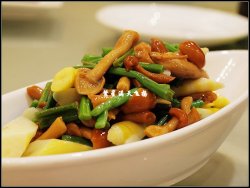 上次吃洋葱,吃到了好吃的清远鸡,所以这次又点了,还吃了好几块,大家都爱吃,两下就吃光光了,呵呵,好吃,皮细嫩,肉嫩嫩,还略带鸡汁,嫩滑爽口,清淡但美味。BB鸭:每次吃这样的烤鸭,都喜欢蘸话梅酱,酸甜的口味加上香嫩的肉肉,很好吃。凉拌金针菇:很好吃,清淡爽口,有我爱吃的金针菇,还有爽口的荷兰豆丝,好吃,吃了好几筷~巴拉雅海鲜色拉:这道菜样子很灵,在外面没见过,很漂亮的装盘。夹了一块鱿鱼,再蘸了调料,还有点辣的,所以后面就只吃了里面的一点番茄,爱吃辣的朋友应该满喜欢吃的,可以试试,有点东南亚菜的感觉^_^西兰花:做的好吃,又吃了好多,发现自己还是比较喜欢吃蔬菜,所以吃了好多。淡淡的汤给原味的西兰花多了一点鲜美,阿呜阿呜,呵呵。菠萝炒饭:摆在菠萝里,里面的料好足哦~看到有我喜欢吃的葡萄干,酸酸甜甜,让味道更多元,更丰富,比在泰国店里吃到的用料更实在了~烧汁焗银鳕鱼:鳕鱼的肉挺嫩的,也满入味的,里面的土豆也很好吃,皮有点脆脆的,里面的很粉很好吃,好像还有山芋,没吃到,555杏仁焗带子:好奇怪的名字,不过这个点心的样子满可爱的,有点想可爱的小兔子,嘿嘿,吃下来的感觉满酸的,要是睡着了,吃1块可以有一下子醒过来的感觉。饮料我喝的紫椰菜优酪乳:被大家bs了一下,我觉得还满好喝的呀,清爽的味道,加上淡淡的酸奶的感觉,下次我还要喝这个,因为它不甜不腻,很健康,味道也不错^_^…查看更多