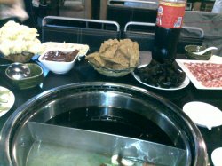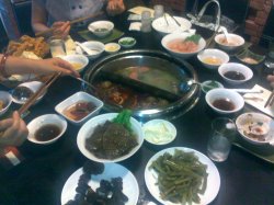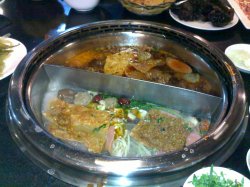 最近听说朋友说他们家的火锅在吴淞地区特别的红火,决定去尝尝看。外面的装修还可以,很多竹子,很有特色,里面是一个个砖瓦搭建的,去的时候有一般没开,不过学生很多都是。我们要了4荤菜2个蔬菜。黑木耳,金针菇,豆腐皮,肉肠,牛羊肉 ,乌梅汁,味道还不错。鸳鸯锅呢,不过真的很辣啊!消费了150不到,还可以,比较合算查看更多