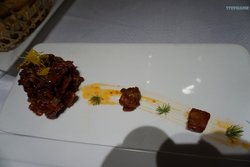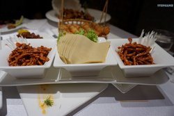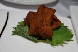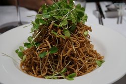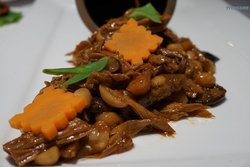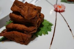 店铺:津菜典藏(河北店)地址:河北区天纬路22号底商交通:公交金钢桥站停车:免费停车位坐落在天纬路上,距离大悲院、天津美术学院和天津之眼都不远,地理位置不错。那次去吃是因为爸爸的生日快到了,在打算请家里人吃饭之前,我们三口先去试试菜。天纬路和三马路口,新建的楼宇高高矗立,很是气派。不知道是什么材质?大厅里面有部分陈列品。这个瓶在我们坐的桌子旁边,有半人多高,用玻璃罩保护起来了。很珍贵的样子。大厅一部分的陈列区中间一个吊灯,从屋顶垂到地上,富丽堂皇楼梯一楼是散座,二三楼是单间,单间有最低消费。纸巾托一开始注意她家就是因为餐具,喜欢这样的图案,花团锦簇,不俗,雅。餐后水果 9.5元四份餐后水果,收了38元,我就默认一份9.5元。餐后水果餐前上,看见杯子造型还不错的份上,我就不多计较啦。每人要了杯水香椿苗拌黑豆腐丝 38元开始上凉菜了。豆腐丝本身就很薄,切得很细,容易入味。不知道用的是不是武清豆腐丝,我分析了一下,武清豆腐丝好吃,一方面是水好,另外一方面豆腐丝做的薄,这样拌起来容易入味。呵呵。拍了这张,是记录一下辣味豆干用了多大的盘子,呵呵,所有的豆干都被摆在了一边。摆盘的艺术。传统辣干 22元豆干有点微辣,之前的腌制工作做得到位,不是草草而就的。百载素什锦 22元过年家里都会做吧。妈妈做的,味道谁也比不了。第一次在外面点这个菜,这也是津菜的一个特色菜。就好像韩国人过年都会做泡菜一样。喜欢这个缸的造型,不过可能着急端出来,下面的萝卜泥有点歪,下次注意就好啦。糖醋排骨 42元排骨,哈哈哈,跟传统辣干一样,讲究的是这个摆盘,感觉不把这个轨迹拍下来就很对不起厨师呢。这样的摆盘有什么说法呢?有意思呢。津味油条 88元这是这家数一数二的招牌菜。我相信第一次来吃的朋友,看到这道菜端上来,肯定会大呼上当,说请客的人小气,弄一盘油条对付。等到吃到嘴里,才知道招牌菜的称谓不是空穴来风。油条里面满满的都是虾仁。两种小料,一个酱油,另一个是我最喜欢甜辣酱。一块一块,根本停不了口。虾皮粉丝小白菜 48元荤素要搭配,是我吃饭的要诀。小白菜最是清口,加上些虾皮,符合天津人的口味,喜欢海鲜味道。宫保鳕鱼粒 58元以前吃饭爱点宫保鸡丁,在这里,我们定了升级版本的鳕鱼粒。宫保的做法相同,微甜,挂糊。鳕鱼的采用让这道菜可以在卖价上提升一个档次。京酱肉丝 38元京酱肉丝是北京菜还是天津菜?傻傻搞不清楚。摆盘很有新意,将豆腐皮和肉丝分开放置,肉丝两份,豆腐皮一份。我不得不说,摆盘是一门艺术。醋溜苜蓿 48元这道菜也叫木须肉,天津的家常菜。鸡蛋,也叫苜蓿,木耳还有肉。这家做的有些微酸,对不起醋溜的名字啦。麻栗野鸭 88元小鸭子的盘子,别家用来装烤鸭,她家用来盛这道菜,也算是物尽其用。但是这菜的定价……鸭肉贵?还是麻栗贵?有点高。这次试菜之行,总体来说爸爸妈妈还是很满意的。环境大气,有钢琴伴奏,服务员服务到位。如店名一般,把传统津菜做出了典藏的味道。作为地道的天津人,很赞赏这种弘扬传统的地方。…查看更多