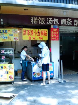 这家算是非常有名了,每天都要排队,8元一锅,有好多,感觉就是锅贴刷上一层酱,关键就是酱好吃,一个人吃不完,吃多了会腻,一开始锅贴脆脆的配上酱很好吃,但时间长了,锅贴就会软掉,不好吃了,建议两人吃一份,买到立刻吃。查看更多