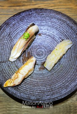 自從去過空蟬後就心心念念想來淺野府一探究竟~外灘有空蟬,巨鹿路有淺野府,兩者交相輝映~2014年,上半年去過空蟬,下半年與淺野府相逢之~幸哉樂哉!#淺野府#聽其餐廳名,估摸著boss姓淺野咩?淺野這個大姓,很有來頭的,數年前看大河劇《利家與松》之時,,由酒井法子飾演的淺野寧寧,戰國三夫人之一,豐臣秀吉的正室~還有戰國名將淺野長政,洛對霓虹國戰國時期的歷史甚敢興趣也~餐廳位置略為小偏,有些遠離鬧市區的意圖~隱藏在巨鹿路這條小街上~裝潢的風格比較偏西洋式,特別是大堂及酒櫃的擺設~和正統的日料店有所不同~但料理吧臺的設計還是很貼心專業,可以跟料理長face to face的交流~都是來自臺灣的~國語交通無障礙~也能學習到更多魚生的知識!anyway,此次探店洛是秉承著學習的態度前來~日本料理的文化還是極其博大精深的~頭盤便是海膽毛蟹豆腐,說是豆腐,其實乃雞蛋,將豆腐輕輕地分離,清晰可見蜂巢狀~搭配著些許有海水味道的海膽及毛蟹腳肉,口感很細膩,入口即化的海膽,在口腔中慢慢地釋放開來~隨即開始品嘗刺身,由淺至深,真鯛,紅目鯛,甜蝦,鰤魚,青花魚,金槍魚toro(とろ),當中還見縫插針有烤銀杏串,烤貝柱(北極貝)不得不贊一下他們家的wasabi,纖維明顯,口感微辣帶甜的滋味,刺身醬油品質也甚好,是店家特制的,用柴魚及昆布調和,其使滋味更能突顯魚生的品質~魚生均產自霓虹國,坐在吧臺看著料理長切配,邊看邊品嘗,此乃享受乎!平日里,真鯛,甜蝦,鰤魚及金槍魚TORO中脂吃的比較多,但淺野府家的品質自然是出眾!倒是紅目鯛帶給了驚喜,魚肉的色澤及滋味都很贊~新鮮的味道猶如大海撲面而來的氣息!接下來便是鴨肝鴨脯,偏西式的擺盆,鴨肝夾雜著鴨脯肉,鴨肝處理到位無鴨腥味,吃口絕對是肥美入口即化,搭配著有嚼勁的鴨脯肉~炸物:秋刀魚無花果,當下乃秋季,秋刀魚盛產的季節!將秋刀魚切著魚醬搭配著cheese,sauce,隨即炸之,外脆內柔,cheese拉絲,如此之混搭,口感mix在一起十分有驚喜!無花果也是用炸物的方式呈現的,外層香脆內在乃半流狀,果肉綿密細緻~很喜歡這樣的創意~漬物:店家自制的,用各種魚肉製作而成,鹹鮮味,開胃一下~烤物:一風干烤花魚,將魚的表皮去除,事先有所醃制過,微微鹹鮮的魚肉,因為是烤過的,油脂慢慢滲入魚肉中,使得越吃越香,滋味甚佳!之後便是重頭戲,sushi啦~是一門藝術,能看著料理長現場製作壽司,還是很有意境的~這就是做吧臺的好處啦~看著料理長切件,調和,手捏著手握壽司一氣呵成,覺得十分的麻利帥氣!壽司有洛所愛的海膽sushi,產地於北海道,大顆色澤就好生誘人~比較推崇當季的秋刀魚sushi,第一次品嘗到秋刀魚刺身類的sushi,肥膩的秋刀魚用紅醋飯前來中和一番,深感舌尖得到的洗禮!使得平凡的食材也有不同凡響的口感!最末登場的便是,魚子飯,生筋子其實就是鮭鱼卵,魚子多汁QQ的,拌著米飯一起品嘗超嗲!超鐘情其的滋味!味噌湯仍舊選用了秋刀魚這個當季的食材,手工的秋刀魚丸,很有質感,纖維明顯,搭配著味噌湯甚贊!味噌湯汁用魚骨及松茸熬制,自然是濃郁回味!最後用甜品結束,水果拼盤+芝麻豆腐,芝麻用臺灣黑糖及黑芝麻調製,搭配著白嫩的豆腐,黑白分明,豆腐細膩混合著香濃的芝麻sauce,很是完美!十分有特色~每一階段,淺野府都會有不同的甜品推出~淺野府的菜式每日都會有所不同,純粹看當季的食材,以新鮮為主,這就是割烹的魅力,不定性,隨意不造作!服務很到位,服務生上菜,循序漸進,同時又能和料理長面對面的交流,又長見識,又開闊眼界,實屬美事!10%的服務費很值得!PS:餐廳提供WIFI~網速穩定!…查看更多