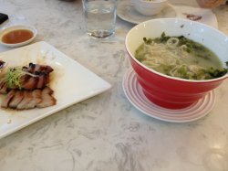 门口招牌写的是茶餐厅,本帮菜,进去了发现还兼做川菜,现在上海滩上的饭馆真是多功能啊!现在的活动是:午市散桌8.8折,晚市满一百送二十的券,团购网站有7.5折的现金券。火焰肉:作为镇店之宝,那绝对是必点的菜肴啊。上来以后发现火焰就是个噱头啊,号称先蒸再煮后炖然后上桌点火,配上苹果酱和椒盐蘸着吃。第一块小失误椒盐蘸多了,嘴里只剩下椒盐味儿了;漱漱口重来,少许苹果酱+少许椒盐,有椒盐的地方还行,没有椒盐的地方有点淡,肉炖的相当酥烂,囫囵吞都行,肉汁很多,但也蛮油的,肉皮酥脆无味,个人觉得除了那把火,整道菜的特色不明显,味道也不是很突出,感觉哗众取宠。不推荐。生煎:也算他家的特色,号称小锅煮出来的生煎。上来一看还蛮与众不同的,咬一口发现外面就是包子皮啊~包子皮就算了,人包子也有汤汁把,完全木有啊!肉馅偏褐色,比较松散,口感不好。底层铺满芝麻倒是第一次见,不过这个底就不如其他生煎的酥脆了。包子皮还是发的蛮好的,比较松软,问题是这不是包子,总之一句话:坑爹!不推荐。清炒时蔬:各位看官,看图就知道了,这是清炒空心菜!空心菜!您能看到叶子么?!能不能去掉点根啊~完全咬不动啊~有木有?清炒空心菜水准还是可以的,吃叶子的话还是比较嫩比较爽口的,调味也正好!最大的败笔死在食材上啊!好歹三十几块一盘空心菜,给我多去掉点根会怎么样啊!砂锅小馄饨:本来想点三黄鸡+鸡粥的,但是鉴于禽流感期间,他家不售卖任何鸡鸭食品,只好作罢。小时候总觉得砂锅小馄饨和一般的小馄饨味道是不一样的,到了他家是完全一样滴。皮子还是很爽滑的,肉包的不算少,吃着还行,貌似放的也是猪油。无功无过,一般般。荠菜鱼米羹:因为不懂鱼米是啥,特地咨询了下服务员,说是用青鱼肉做成的小圆子,觉得还挺新鲜的就要了一份。大家知道食物和图片永远是不符的,菜单上看着鱼米很多上来就没看到多少。汤还是有点鲜的,但是感觉有点腥,比较一般,不怎么推荐。店面装修伴有很多青花瓷的物件,提升了一点小格调,中午吃饭的时间人还不少。这家店的菜单价格不算便宜,吃下来的感觉也不怎么样,性价比不怎么高。查看更多