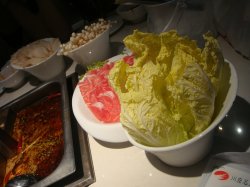 排了一个小时的对才吃上的海底捞,在天朝真心不容易,吃过饭都要排这么长的队。两个人,点了个鸳鸯锅底,59米,各取所需。点了丸类组合,因为每个都想吃,还是虾丸好吃。还有羊肉,感觉没有东来顺的好吃,毕竟专业。鱼片切的是比较肥厚,但是鲜味不足。我调的是以菌菇酱为底,加芝麻,香菜,牛肉粒,味道一级棒。但是他家不分吸烟区,有客人一边吃饭一边抽烟,很讨厌。查看更多