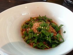 海底捞火锅石景山路乙18号万达广场c栋4楼(近1号线八宝山地铁站),.朋友帮忙调制的一个自制的火锅料哦,很不错呢,麻酱垫底,里面放上了那个蒜茸辣酱还有炸黄豆,还有小葱进行点缀提味,很不错哦,用来吃那个虾滑很不错呢,口味微辣,口感筋道,好吃哦。查看更多