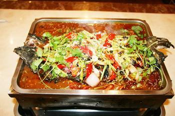 这家烤鱼店就在银泰百货斜对面,店面不算大,但里面还挺宽敞的,也比较干净。他家鱼个头都不算小,开始拿了一只要2斤8两呢,我们觉得太大了,于是就让服务员找了一只小一些的,不过也有2斤6两呢,选的鲶鱼,没什么刺,味道选的鱼香的,甜辣口味,还挺好吃的,鱼很大,鱼皮烤的比较焦,开始吃不是很入味,但是可以蘸着汁吃,也挺香的,还放了好多蒜片和香葱提味。配菜点了3样,木耳、腐竹和青笋。木耳不错,能带起很多汤汁,腐竹也很嫩,青笋不是很入味,反正下面有酒精灯,焖一会,就着米饭,很不错。价格倒也不贵,2人消费了130多元。…查看更多