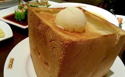 港丽餐厅的蜂蜜厚多士属于性价比最高的东西了,蜂蜜的分量加的确实够多的,酥酥脆脆的,每一块都是融入了浓浓的甜味的了,雪球就是一个硕大的,我记得是香草味道的吧,这个不是直接吃的,一般都是等融化了以后流进去面包块里面去吃的了,还额外给了一碟黄油的。查看更多