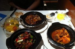 周末晚上来吃的,很喜欢来看天幕,所以就顺便来吃的。我们下午5点多就来了,好在没有等位,就是布局有点紧凑。点了很爱吃红酒烩牛尾,炖的特别软烂,用红酒烧的,味道不错。三杯鸡也很好吃,甜咸口的,鸡肉特别嫩。水果茶热热的,果香闻着挺香的。主食吃的港丽炒饭,米粒很劲道,特别香。但他家的菜量就是不大。2人消费210元。查看更多