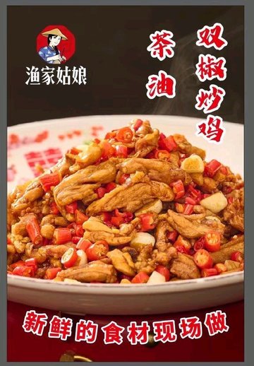 火焰魚頭 / 樟樹港辣椒炒肉 / 明爐小炒牛肉 / 金沙油焖蝦 / 茶油雙椒炒雞 / 夾馍醬牛肉