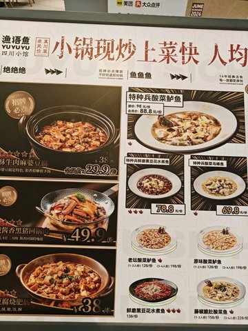 原味酸菜鱸魚 / 辣子雞 / 川椒富貴毛血旺 / 油潑發財沸騰魚 / 爆椒火山牛小排 / 清新脆魚皮