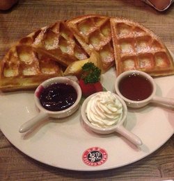 很喜欢的一家咖啡店,逛街路过顺便进去休息,他家的可爱小熊一直都很喜欢,而且每款颜色都同,这次这个紫色的也还挺可爱的。我比较爱吃他家的原味松饼,因为是原味,所以不那么的甜腻,端来还是温热的,外皮微焦,趁热吃,很香,3中蘸料最爱吃的就是奶油,其他2种都是果味的。人均60元。查看更多