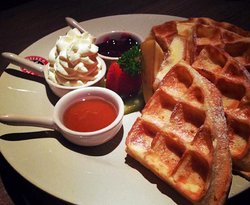 漫咖啡,环境很好。巧克力松饼,我特别喜欢吃。摆盘很精致,口感非常的松软。巧克力味道非常重,很不错。还有很多水果,猕猴桃,樱桃,蘸着奶油,特别美味。查看更多